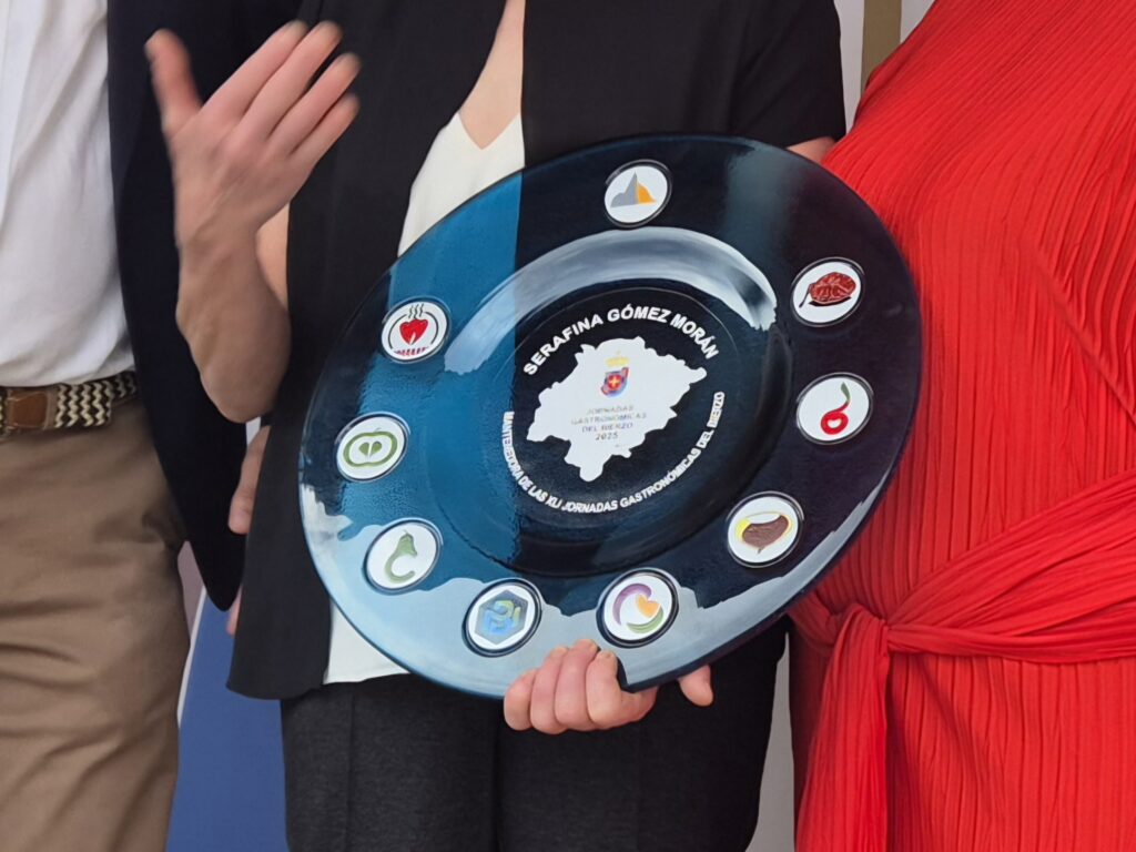 Durante el acto, el presidente del Consejo Comarcal y la consejera de Turismo hicieron entrega a Fina Gómez del galardón como mantenedora, una obra de vidrio del artesano berciano Rogelio Pacios.